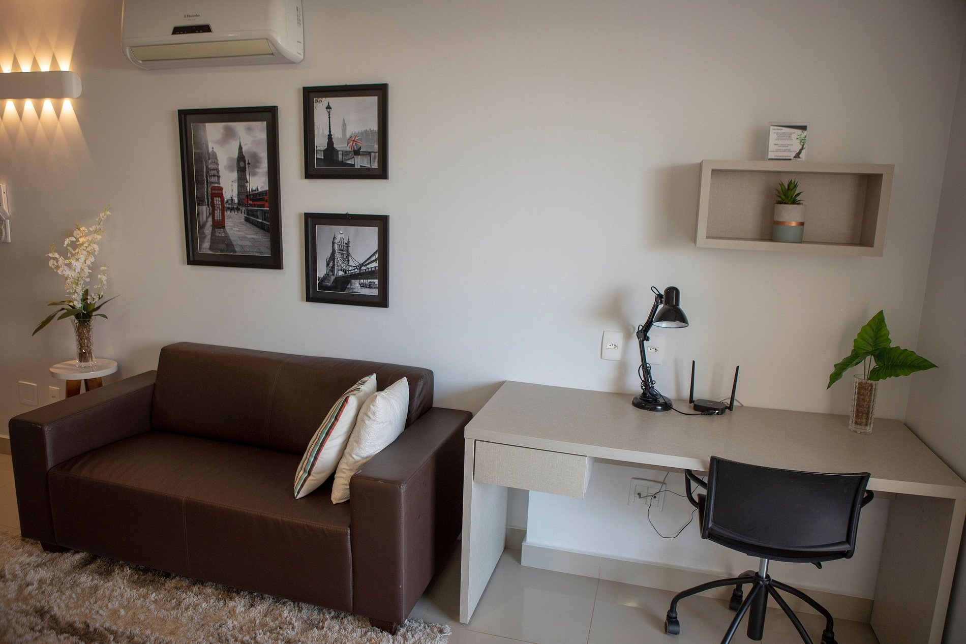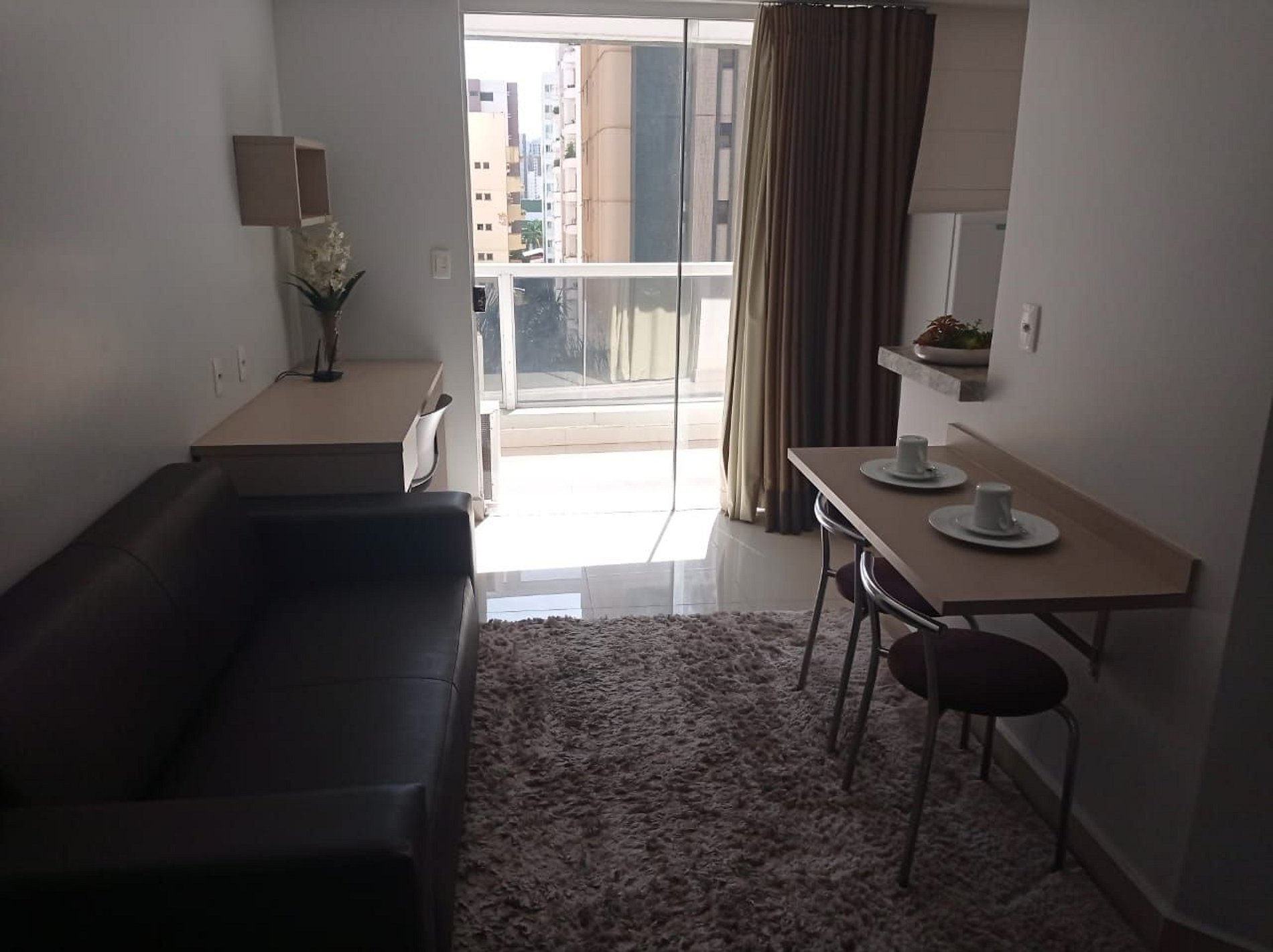 Flat aconchegante em excelente localização, com tudo acessível num passeio a pé. Possui ambientes integrados: sala e varanda com vista panorâmica; suíte com cama box casal; armários; banheiro com armários, espelho e blindex; cozinha completa e área de serviço. Além disso fornecemos roupas de cama e banho; ar condicionado; TV; sofá; acesso à internet via Wi-Fi; elevadores; recepção 24h. O bairro mistura centro comercial com prédios e casas residenciais, e isso o torna bastante agradável.