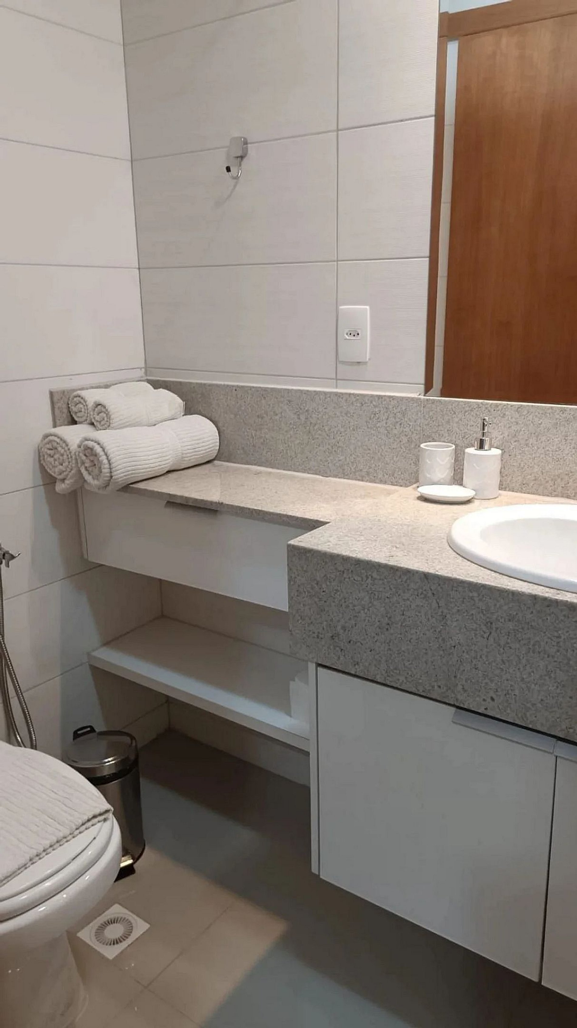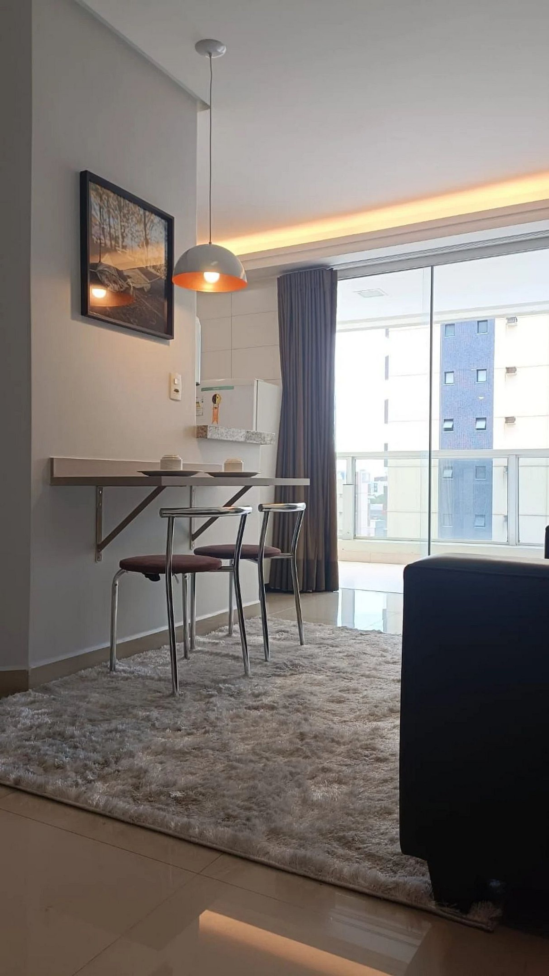 Flat aconchegante em excelente localização. Possui ambientes integrados: sala com ampla varanda ; suíte com cama box casal e armário; banheiro com armário, espelho e blindex; cozinha com bancada para refeição e área de serviço. Além disso fornecemos kit cozinha completo com garrafa de café, itens básicos (panelas, vasilhas, talheres). Kit de roupas de cama e banho por hospedagem. Em hospedagens de 30 dias ou mais, o hóspede paga separado o consumo de energia no checkout. acesso à internet via Wi-Fi; circuito interno de câmeras; 3 elevadores; fachada e recepção diferenciadas. No térreo, o hóspede pode desfrutar de uma panificadora com buffet de café da manhã e almoço. Hamburgueria. E gelateria com o sorvete mais badalado da Capital. É possível ir a pé ao shopping, ao parque, ao banco (inclusive caixa 24 horas) e a alguns dos melhores restaurantes de Goiânia. Também temos na cobertura do condominio o Onix Coworking, onde é possivel reservar salas de reuniões, auditorio e até mesmo estações de trabalho. O Setor Bueno é o coração da região nobre de Goiânia. O bairro mistura centro comercial com prédios e casas residenciais, e isso o torna bastante agradável. Há mercados, padarias, farmácias, clínicas médicas, áreas verdes (Parques Vaca Brava e Areião, cartões postais da cidade), pracinhas de convivência; tudo acessível num passeio a pé para quem está hospedado no Ônix Bueno.