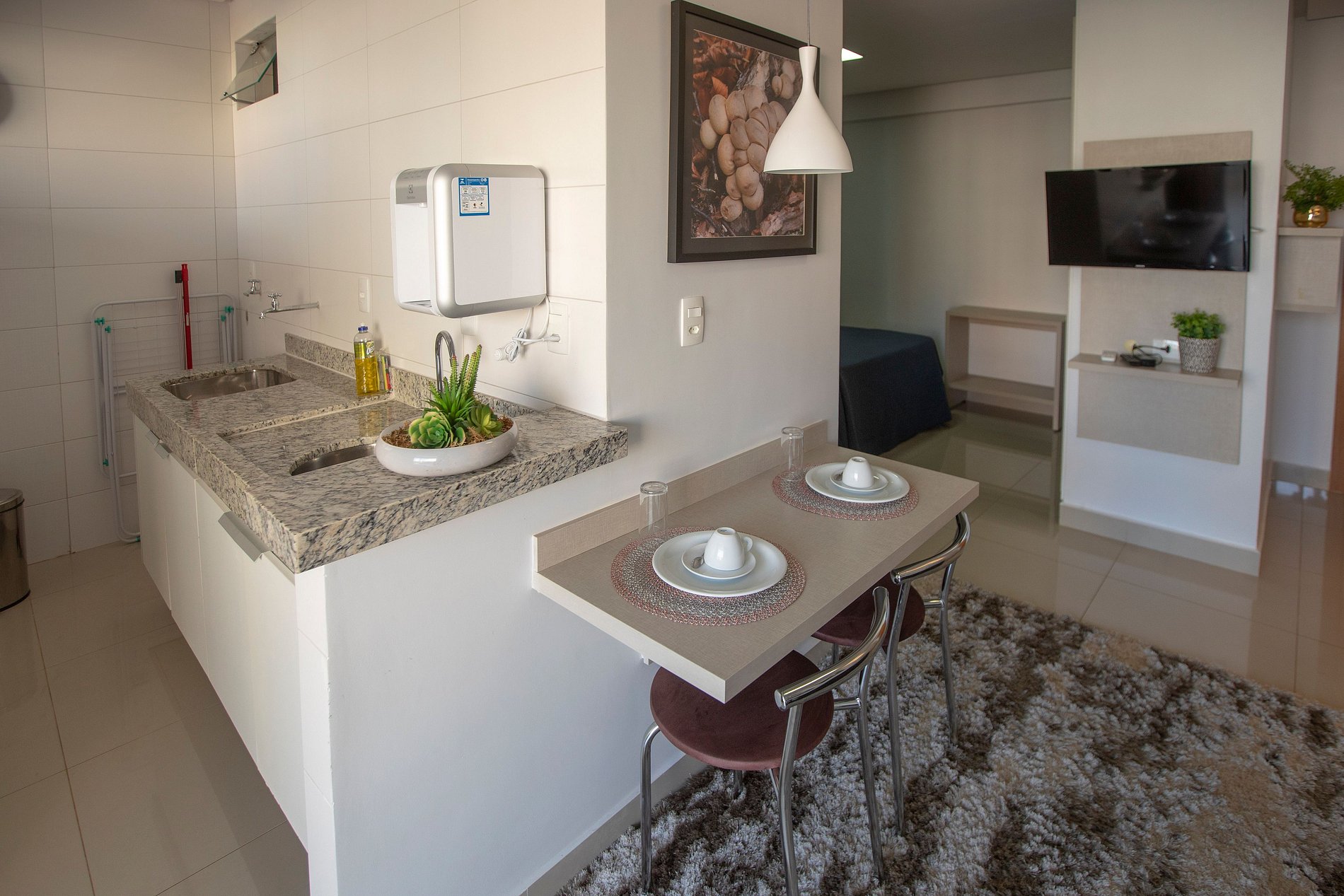 Flat aconchegante em excelente localização. Possui ambientes integrados: sala com ampla varanda ; suíte com cama box casal e armário; banheiro com armário, espelho e blindex; cozinha com bancada para refeição e área de serviço. Além disso fornecemos kit cozinha completo com garrafa de café, itens básicos (panelas, vasilhas, talheres). Kit de roupas de cama e banho por hospedagem. Em hospedagens de 30 dias ou mais, o hóspede paga separado o consumo de energia no checkout. acesso à internet via Wi-Fi; circuito interno de câmeras; 3 elevadores; fachada e recepção diferenciadas. No térreo, o hóspede pode desfrutar de uma panificadora com buffet de café da manhã e almoço. Hamburgueria. E gelateria com o sorvete mais badalado da Capital. É possível ir a pé ao shopping, ao parque, ao banco (inclusive caixa 24 horas) e a alguns dos melhores restaurantes de Goiânia. Também temos na cobertura do condominio o Onix Coworking, onde é possivel reservar salas de reuniões, auditorio e até mesmo estações de trabalho. O Setor Bueno é o coração da região nobre de Goiânia. O bairro mistura centro comercial com prédios e casas residenciais, e isso o torna bastante agradável. Há mercados, padarias, farmácias, clínicas médicas, áreas verdes (Parques Vaca Brava e Areião, cartões postais da cidade), pracinhas de convivência; tudo acessível num passeio a pé para quem está hospedado no Ônix Bueno.