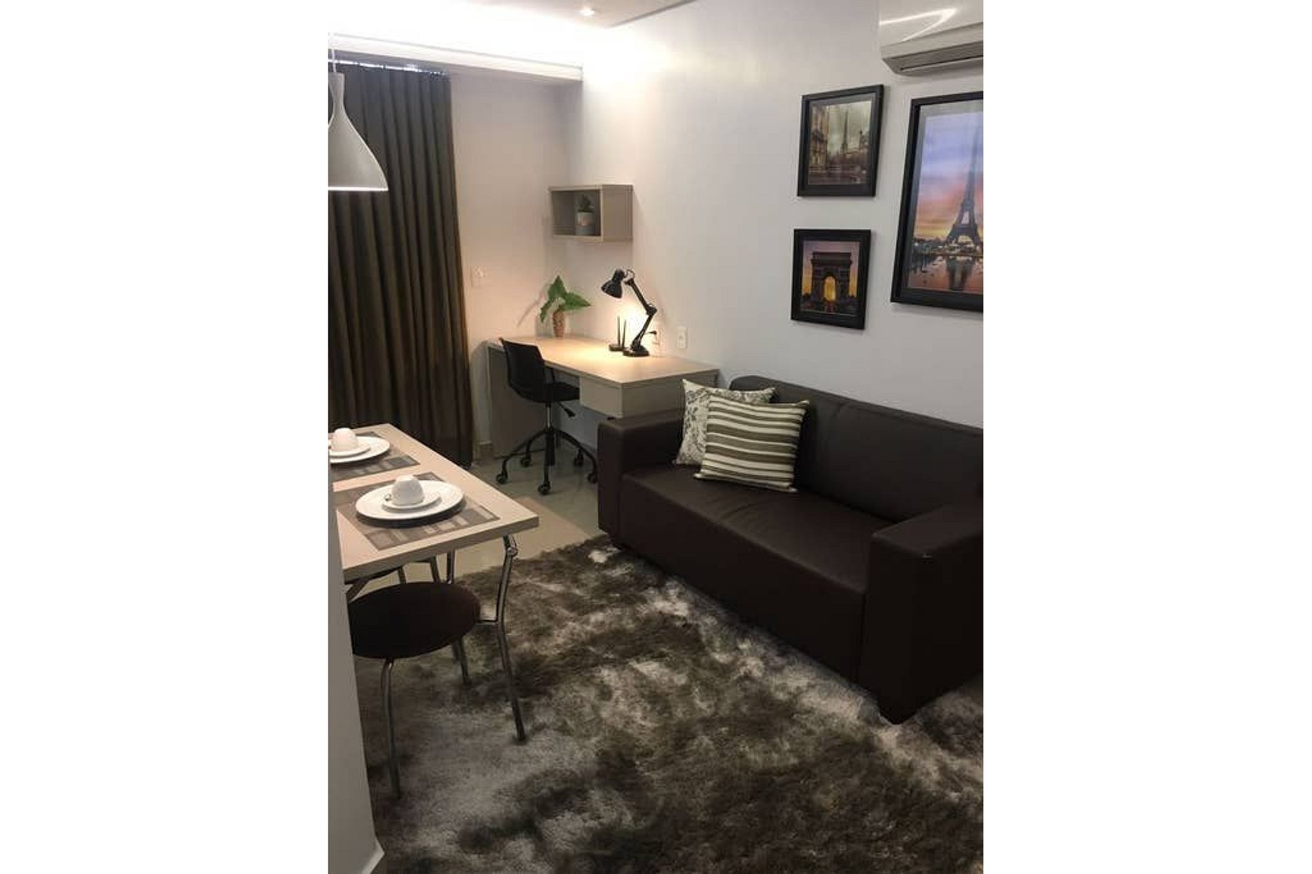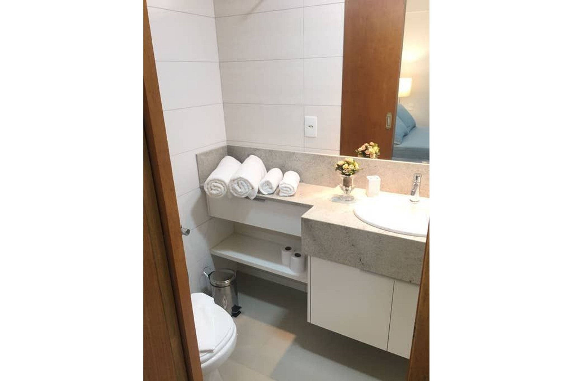Flat aconchegante em excelente localização, com tudo acessível num passeio a pé. Possui ambientes integrados: sala e varanda com vista panorâmica; suíte com cama box casal; armários; banheiro com armários, espelho e blindex; cozinha completa e área de serviço. Além disso fornecemos roupas de cama e banho; ar condicionado; TV; sofá; acesso à internet via Wi-Fi; elevadores; recepção 24h. O bairro mistura centro comercial com prédios e casas residenciais, e isso o torna bastante agradável.