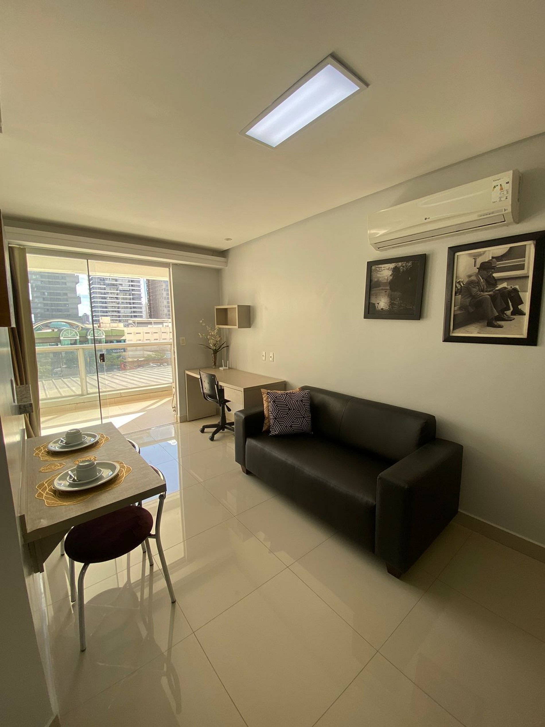 Flat aconchegante em excelente localização. Possui ambientes integrados: sala com ampla varanda ; suíte com cama box casal e armário; banheiro com armário, espelho e blindex; cozinha com bancada para refeição e área de serviço. Além disso fornecemos kit cozinha completo com garrafa de café, itens básicos (panelas, vasilhas, talheres). Kit de roupas de cama e banho por hospedagem. Em hospedagens de 30 dias ou mais, o hóspede paga separado o consumo de energia no checkout. acesso à internet via Wi-Fi; circuito interno de câmeras; 3 elevadores; fachada e recepção diferenciadas. No térreo, o hóspede pode desfrutar de uma panificadora com buffet de café da manhã e almoço. Hamburgueria. E gelateria com o sorvete mais badalado da Capital. É possível ir a pé ao shopping, ao parque, ao banco (inclusive caixa 24 horas) e a alguns dos melhores restaurantes de Goiânia. Também temos na cobertura do condominio o Onix Coworking, onde é possivel reservar salas de reuniões, auditorio e até mesmo estações de trabalho. O Setor Bueno é o coração da região nobre de Goiânia. O bairro mistura centro comercial com prédios e casas residenciais, e isso o torna bastante agradável. Há mercados, padarias, farmácias, clínicas médicas, áreas verdes (Parques Vaca Brava e Areião, cartões postais da cidade), pracinhas de convivência; tudo acessível num passeio a pé para quem está hospedado no Ônix Bueno.