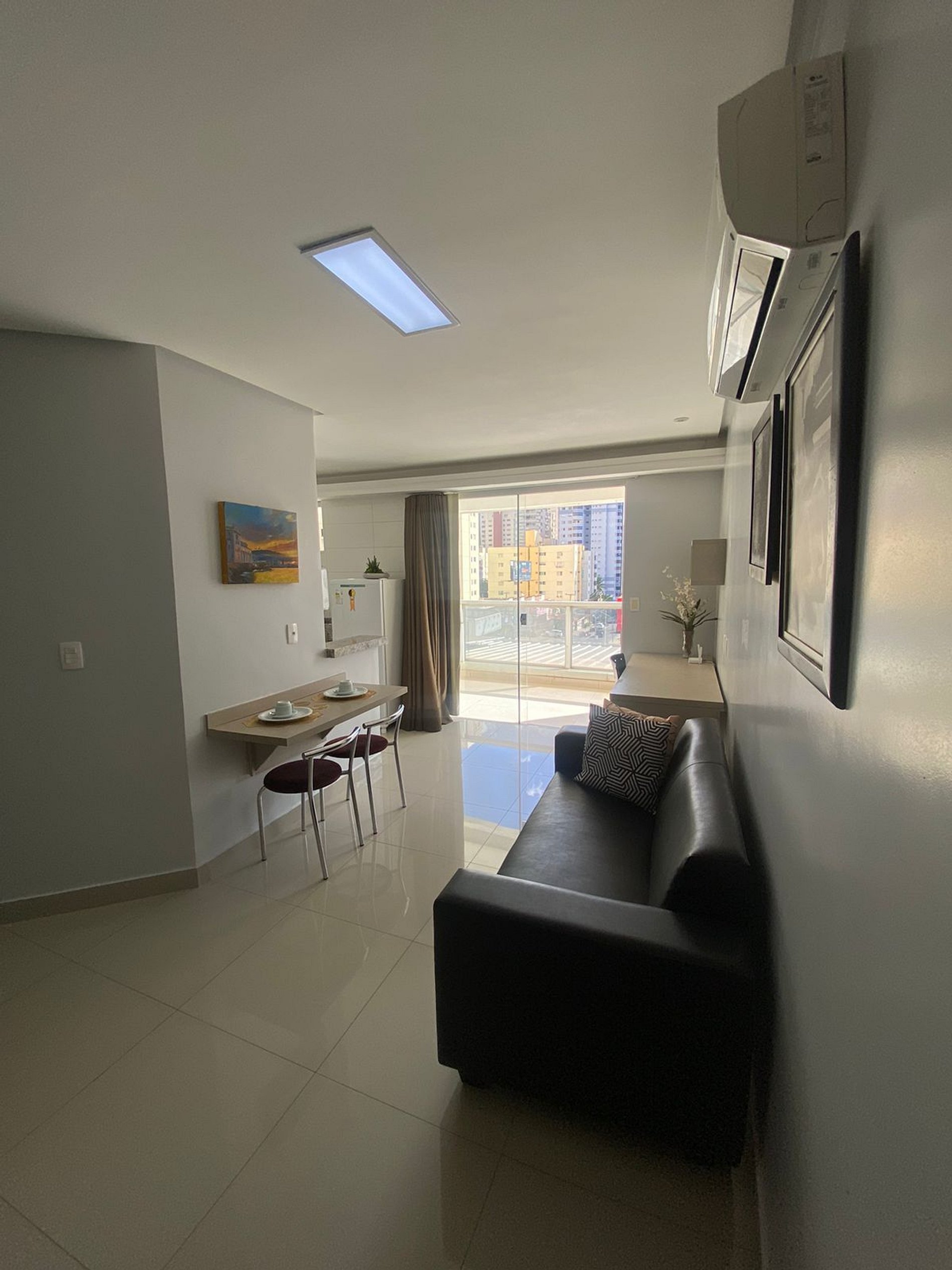 Flat aconchegante em excelente localização, com tudo acessível num passeio a pé. Possui ambientes integrados: sala e varanda com vista panorâmica; suíte com cama box casal; armários; banheiro com armários, espelho e blindex; cozinha completa e área de serviço. Além disso fornecemos roupas de cama e banho; ar condicionado; TV; sofá; acesso à internet via Wi-Fi; elevadores; recepção 24h. O bairro mistura centro comercial com prédios e casas residenciais, e isso o torna bastante agradável.