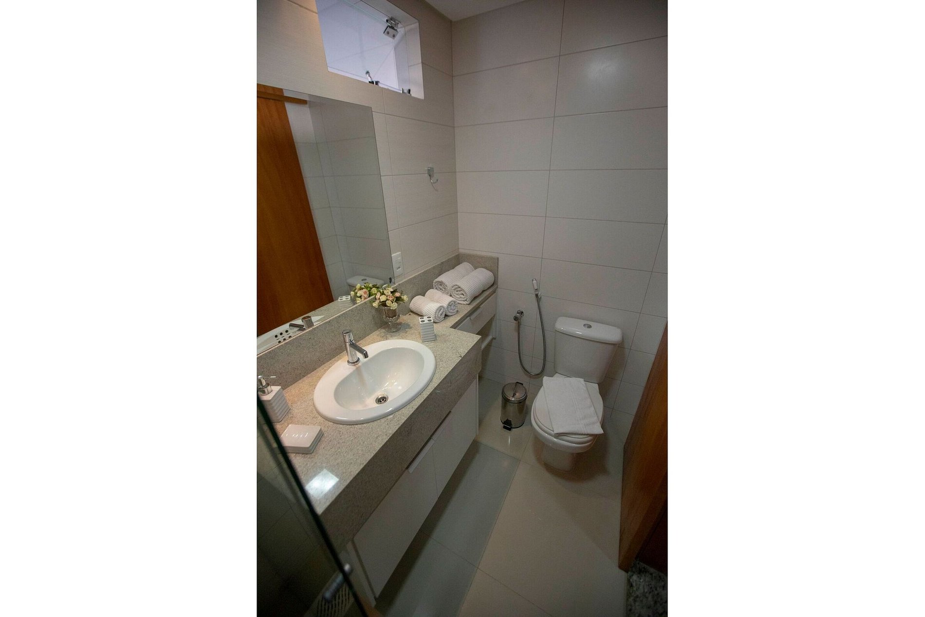 Flat aconchegante em excelente localização, com tudo acessível num passeio a pé. Possui ambientes integrados: sala e varanda com vista panorâmica; suíte com cama box casal; armários; banheiro com armários, espelho e blindex; cozinha completa e área de serviço. Além disso fornecemos roupas de cama e banho; ar condicionado; TV; sofá; acesso à internet via Wi-Fi; elevadores; recepção 24h. O bairro mistura centro comercial com prédios e casas residenciais, e isso o torna bastante agradável.