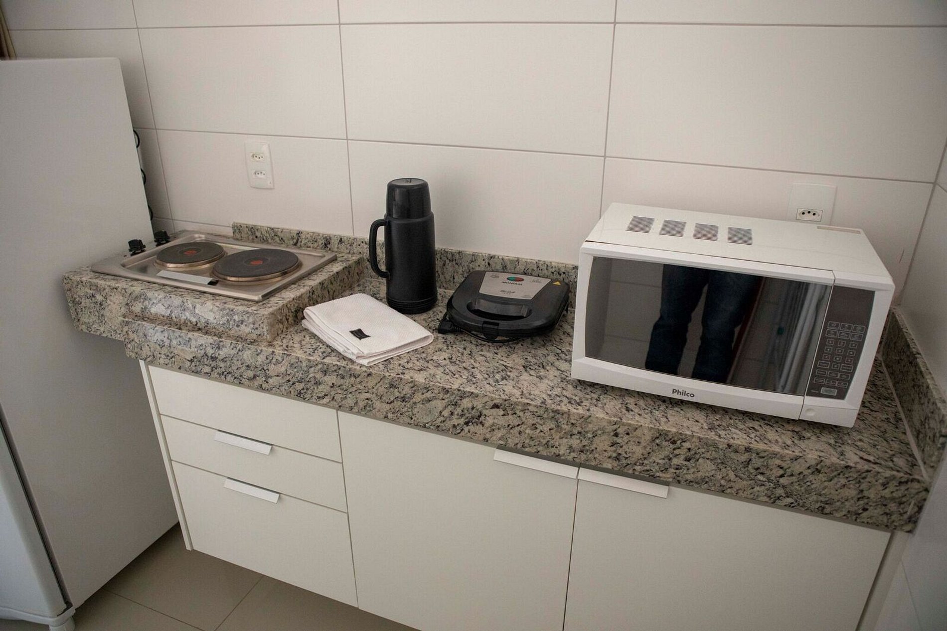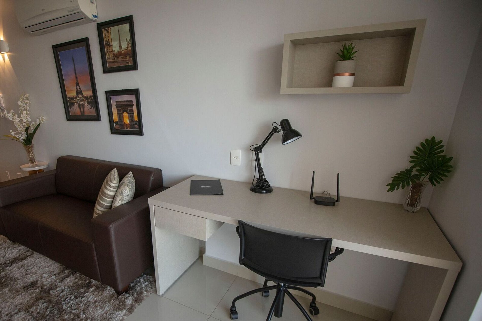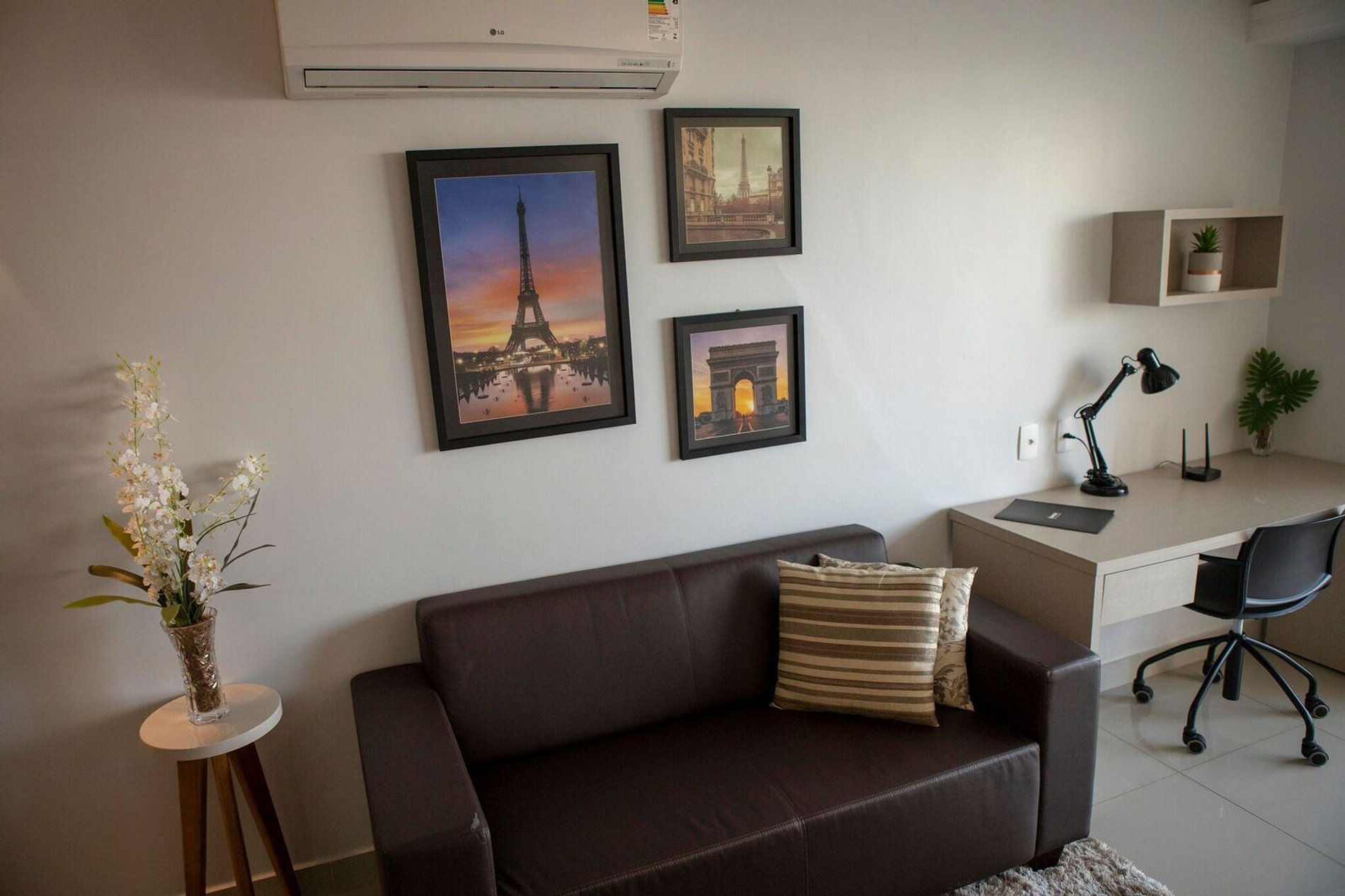 Flat aconchegante em excelente localização, com tudo acessível num passeio a pé. Possui ambientes integrados: sala e varanda com vista panorâmica; suíte com cama box casal; armários; banheiro com armários, espelho e blindex; cozinha completa e área de serviço. Além disso fornecemos roupas de cama e banho; ar condicionado; TV; sofá; acesso à internet via Wi-Fi; elevadores; recepção 24h. O bairro mistura centro comercial com prédios e casas residenciais, e isso o torna bastante agradável.