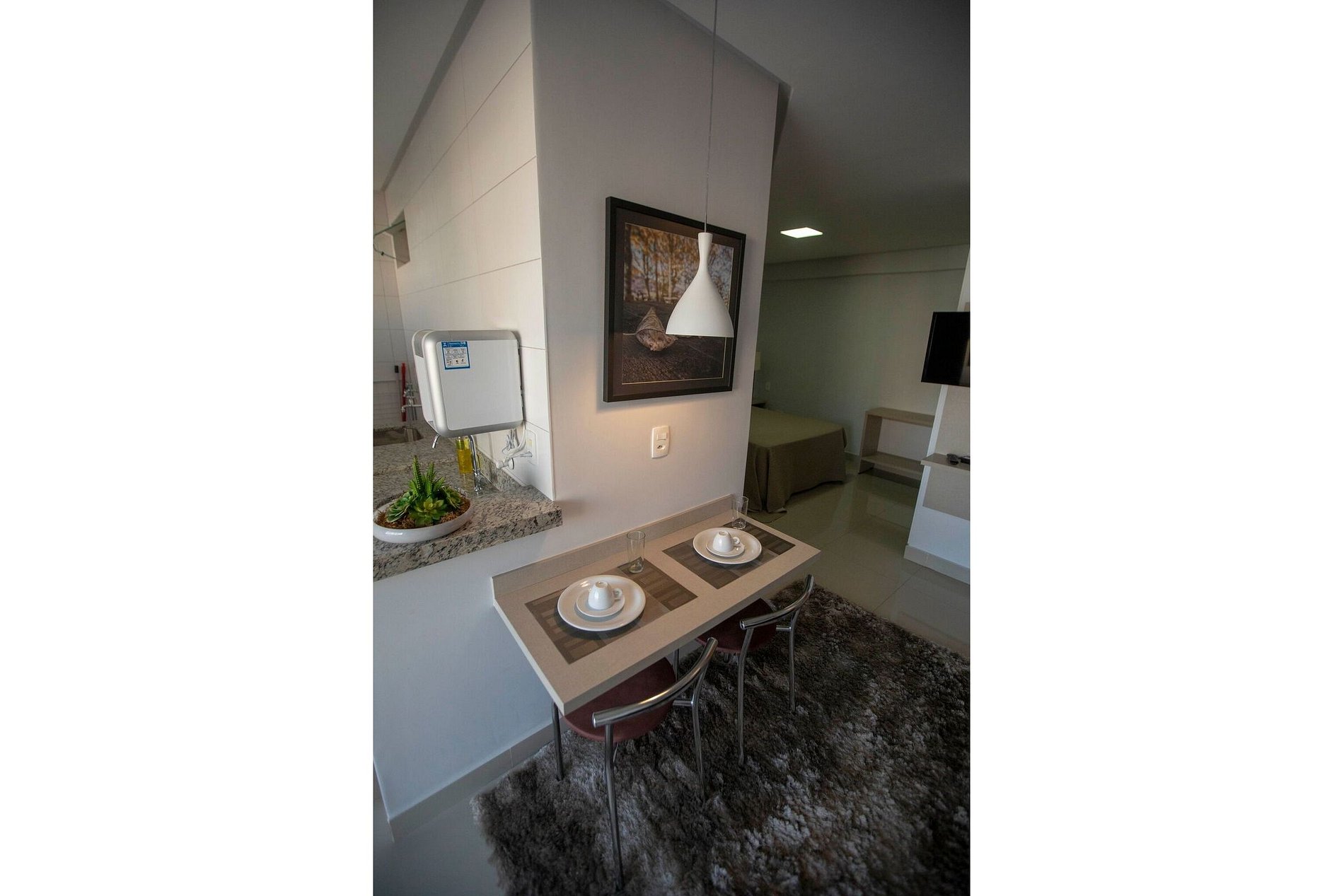 Flat aconchegante em excelente localização. Possui ambientes integrados: sala com ampla varanda ; suíte com cama box casal e armário; banheiro com armário, espelho e blindex; cozinha com bancada para refeição e área de serviço. Além disso fornecemos kit cozinha completo com garrafa de café, itens básicos (panelas, vasilhas, talheres). Kit de roupas de cama e banho por hospedagem. Em hospedagens de 30 dias ou mais, o hóspede paga separado o consumo de energia no checkout. acesso à internet via Wi-Fi; circuito interno de câmeras; 3 elevadores; fachada e recepção diferenciadas. No térreo, o hóspede pode desfrutar de uma panificadora com buffet de café da manhã e almoço. Hamburgueria. E gelateria com o sorvete mais badalado da Capital. É possível ir a pé ao shopping, ao parque, ao banco (inclusive caixa 24 horas) e a alguns dos melhores restaurantes de Goiânia. Também temos na cobertura do condominio o Onix Coworking, onde é possivel reservar salas de reuniões, auditorio e até mesmo estações de trabalho. O Setor Bueno é o coração da região nobre de Goiânia. O bairro mistura centro comercial com prédios e casas residenciais, e isso o torna bastante agradável. Há mercados, padarias, farmácias, clínicas médicas, áreas verdes (Parques Vaca Brava e Areião, cartões postais da cidade), pracinhas de convivência; tudo acessível num passeio a pé para quem está hospedado no Ônix Bueno.